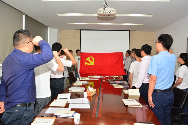 緊接著,開(kāi)展“四重”活動(dòng)?;顒?dòng)前公司行政人事部專(zhuān)門(mén)從園區(qū)檔案室調(diào)取每一名黨員入黨志愿書(shū),將內(nèi)容拍好發(fā)到每人,重溫入黨時(shí)的難忘經(jīng)歷。在劉建華書(shū)記的帶領(lǐng)下,右拳高擎,神情莊重,面對(duì)鮮紅的黨旗鄭重宣誓,抒發(fā)對(duì)黨的忠誠(chéng),踐行黨的宗旨,維護(hù)黨的形象和愛(ài)黨愛(ài)國(guó)情懷。