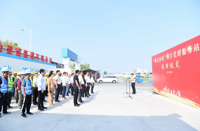 園區(qū)黨工委委員、管委會副主任崔廣全、張漢華共同為“城芯同筑”項目黨群服務站揭牌,開啟央企與地方企業(yè)黨建共建的美好開端。