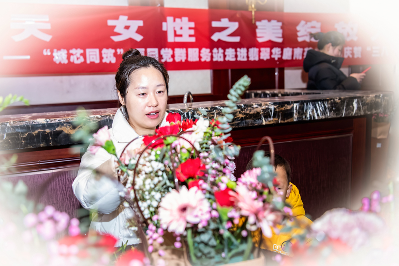 活動現(xiàn)場氣氛熱烈而融洽,居民們邊向老師學(xué)習邊交流,互相分享自己的插花心得。一朵朵美麗的花朵在大家的手中綻放,仿佛也在訴說著女性的堅韌與美麗。