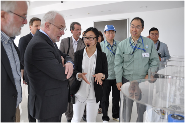 在尼吉康公司,南出智嗣董事長(zhǎng)仔細(xì)為代表團(tuán)介紹了企業(yè)發(fā)展歷史、產(chǎn)品性能等情況,并饒有興趣地交流起各自的工作、生活。日語(yǔ)、德語(yǔ)、英語(yǔ)、中文夾雜在一起,加上雙方豐富的肢體語(yǔ)言,熱烈不已。南出董事長(zhǎng)說(shuō),很享受在宿遷的工作、生活,每天在園區(qū)都可以品嘗到可口的日本料理,周末可以到市區(qū)品嘗星巴克,味道很不錯(cuò)。他還熱情邀請(qǐng)羅特先生一起品嘗。羅特對(duì)尼吉康公司的熱情接待表示感謝,他表示,此次園區(qū)之行雖然時(shí)間短暫,但給他留下了尤為深刻的印象,期望南出董事長(zhǎng)等到德國(guó)做客。