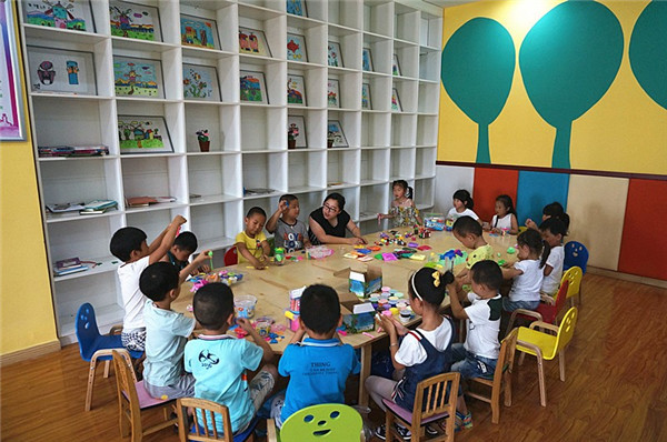 七月份和八月份的每個(gè)周六,是社區(qū)興趣班——手工秀上課的日子。每天下午三點(diǎn)鐘小朋友們手提多彩的太空泥,整整齊齊地坐好開始上課。學(xué)習(xí)中他們可都是一副極其認(rèn)真的樣子。