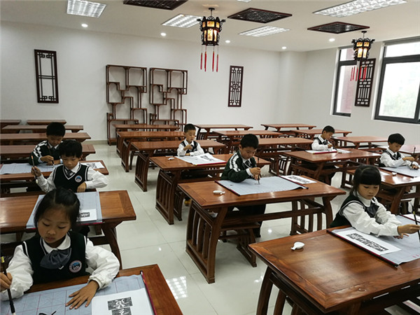 孩子們天性活潑,足球場上,小男生得到品格的磨礪,在團隊的合作中捍衛(wèi)榮譽;形體塑造是針對小女生的科目,她們在花樣的體操動作里伸展四肢,體驗身心的協(xié)調(diào);趣味實驗是科技與創(chuàng)造力的結(jié)合,各種部件的拼接充滿著挑戰(zhàn)與驚喜;《千字文》書法為孩子們打開漢字的窗口,一橫一劃間感受水墨的韻味;凝神對弈不為追求圍棋的技巧,只為在黑白的布局中開闊孩子們的胸懷……